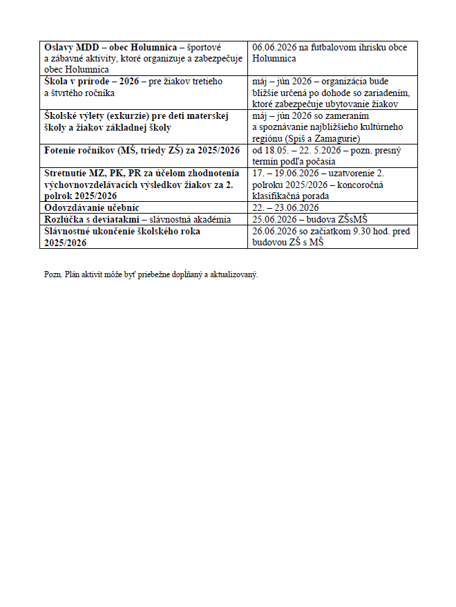 Organizácia výchovnovzdelávacieho procesu – plánované udalosti a aktivity na mesiace január – marec 2026